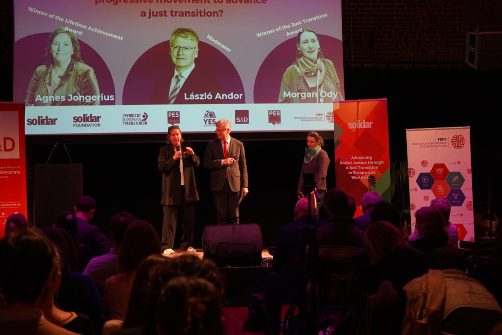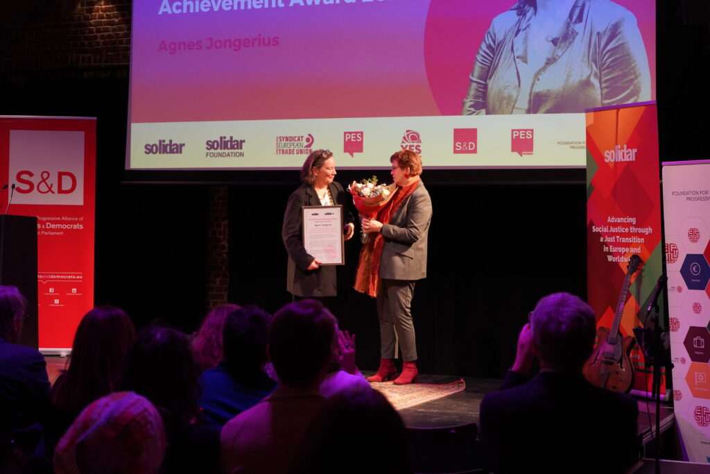 Then, we turned to our awardees. First, MEP Gaby Bischoff presented the Lifetime Achievement Award to Agnes Jongerius. Throughout her career, from trade unions to the European Parliament, Agnes has shown a remarkable dedication to securing fair working conditions and advancing the rights of workers across Europe. She has also made outstanding contributions to alliance-building within the movement, showing that when we work together we can made positive change happen. In her acceptance speech, Agnes emphasised the importance of delivering for people and the planet, even in a moment when these imperatives are slipping off the agenda.
